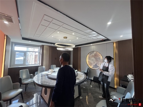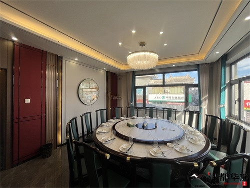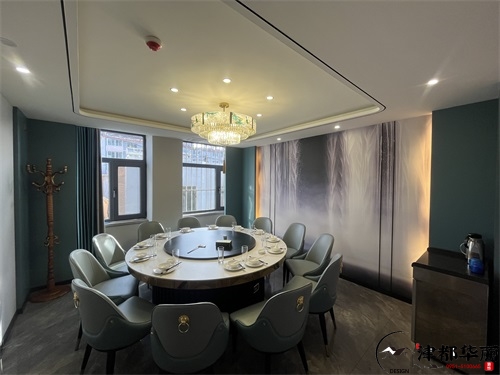 今天分享的是吴忠金龙回坊火锅店装修设计实景,这家火锅店装修设计风格以新中式国潮风为核心,既保留了传统餐饮空间的雅致底蕴,又通过现代手法注入年轻活力,精准契合了当下火锅店装修设计中“文化赋能+体验升级”的趋势。从包间区域来看,火锅店装修设计的“轻奢质感”被巧妙落地:墙面采用木纹饰面板搭配金色叶片装饰,既借由木质元素传递中式空间的温润,又以金属细节提升宴请场景的精致感;圆形餐桌搭配带有新中式线条的软包座椅,浅白与墨绿的配色既呼应了传统美学的雅致,又通过软包材质保证了用餐的舒适感;顶部的圆形吊顶+水晶吊灯组合,既以“天圆地方”的传统意象强化空间仪式感,又用灯光的暖调氛围消解了商务包间的冷硬。
